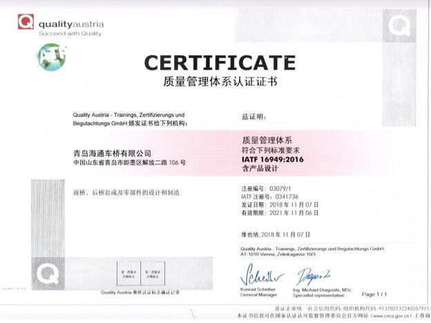 質(zhì)量為基,誠信為本,青島海通車橋?qū)⒁蝗缂韧`行質(zhì)量第一、誠信經(jīng)營的社會責(zé)任,持續(xù)打造車橋精品,向質(zhì)量求效益,以質(zhì)取勝。
