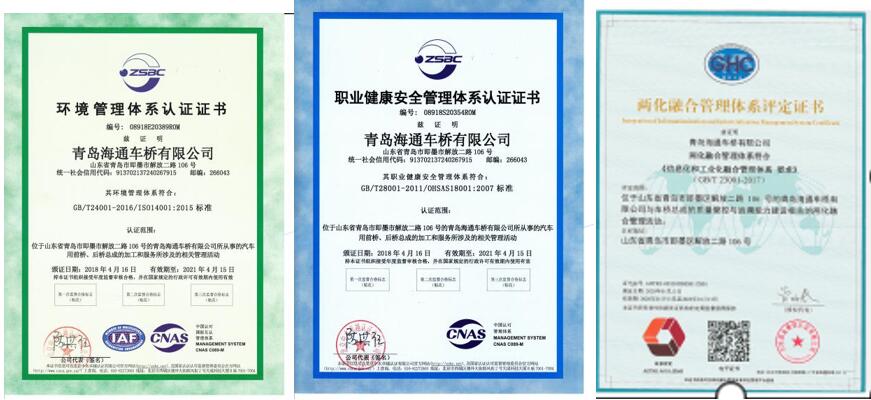 海通被行業(yè)內(nèi)稱之為車橋的工匠師,認(rèn)真貫徹執(zhí)行國家、行業(yè)、和地方有關(guān)標(biāo)準(zhǔn)化的法律、法規(guī)、制度,重視研究和跟蹤國際標(biāo)準(zhǔn),所有產(chǎn)品均執(zhí)行現(xiàn)行有效的國家、行業(yè)標(biāo)準(zhǔn),并積極推動行業(yè)標(biāo)準(zhǔn)化建設(shè),從未發(fā)生過重大質(zhì)量事故。